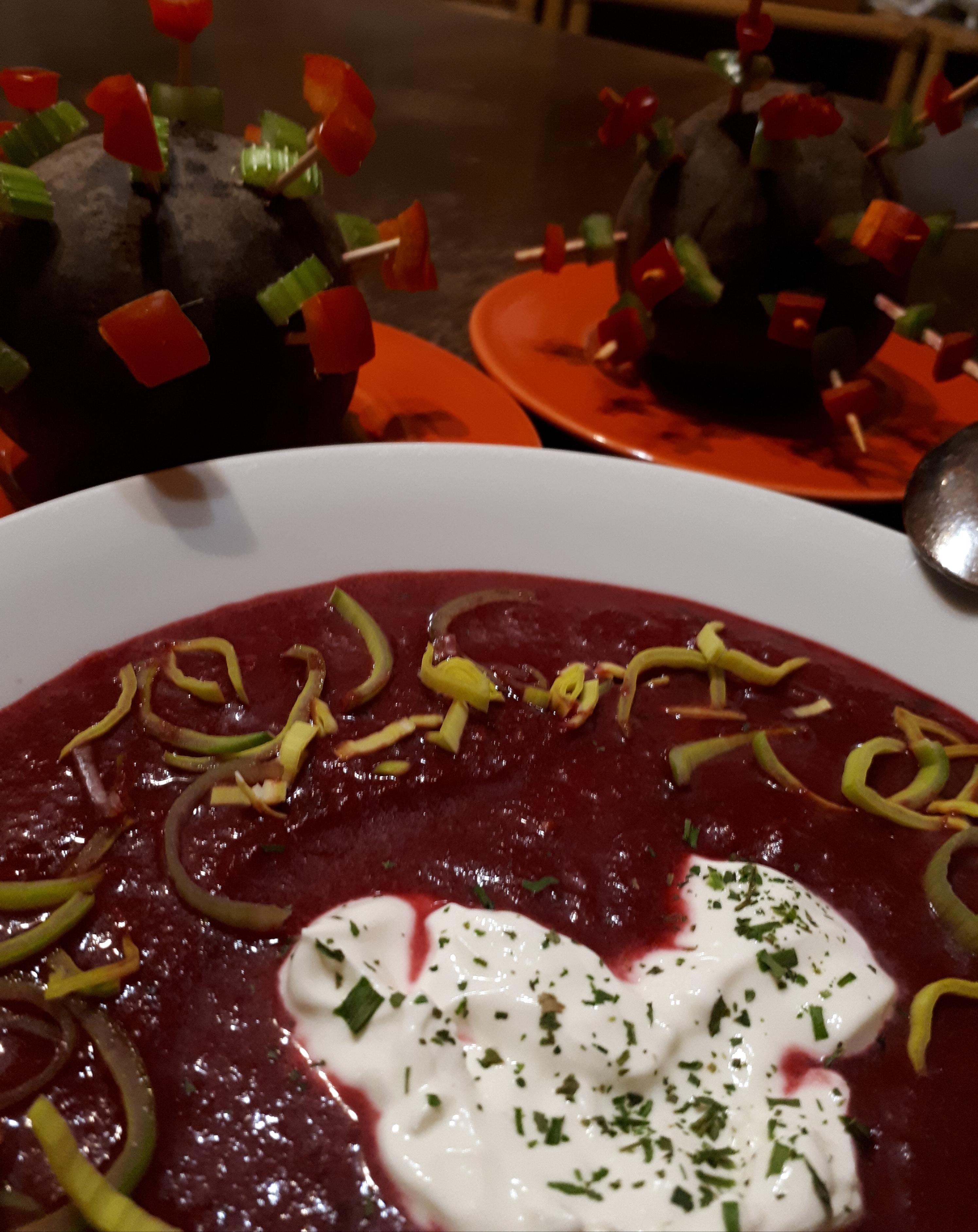 Tento článek píši na začátku dubna 2020, v době nouzového stavu COVID-19, proto jsem vybrala recept plný vitamínů a minerálů. Polévku z červené řepy, cibule, fenyklu, anýzu - ozdobenou bylinkami.